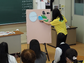 続いて、4年生によるパネルシアターが披露され、保育現場さながらの表現に、参加者からは自然と笑顔がこぼれていました。