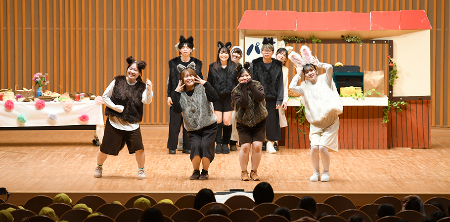 保育科の学生達が毎年開催している子ども向けステージ「おとぎのくに」。今回はミニステージとして皆さんの前で披露します。お楽しみに!