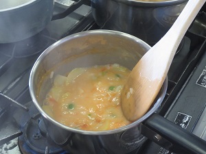 食材を細かく切り、全てを加熱します。あら熱を取ったらミキサーにかけます。