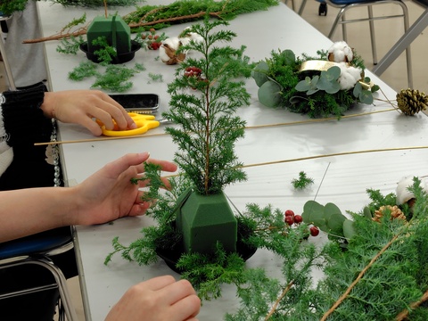 公開日 2025年12月09日 2年生ブライダルフラワー授業で ミニツリー✨とクリスマスリース✨ を作りました。 この季節ならではのアレンジメントです。 先ずは先生の分かりやすい説明を聞きます。 (*^-^*) その後、各自がアレンジメントをしていきます。 それぞれ、個性豊かにアレンジができました。 自宅に飾るの楽しみです!