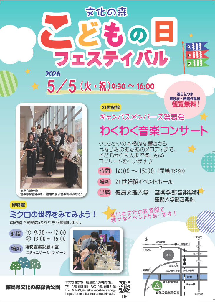5月5日(火・祝)、徳島県文化の森総合公園にて「こどもの日フェスティバル」が開催されます。